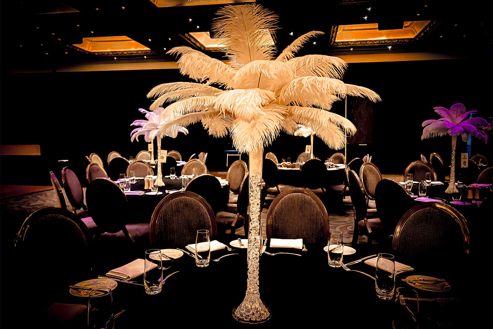 Perfect for weddings, corporate events, gala dinners, awards nights, and milestone celebrations, white feather centrepieces are especially popular for Gatsby-inspired, Hollywood glamour, black-tie, and winter-white events. Styled on sleek vases, they elevate table décor without overwhelming the space, allowing guests to comfortably interact.